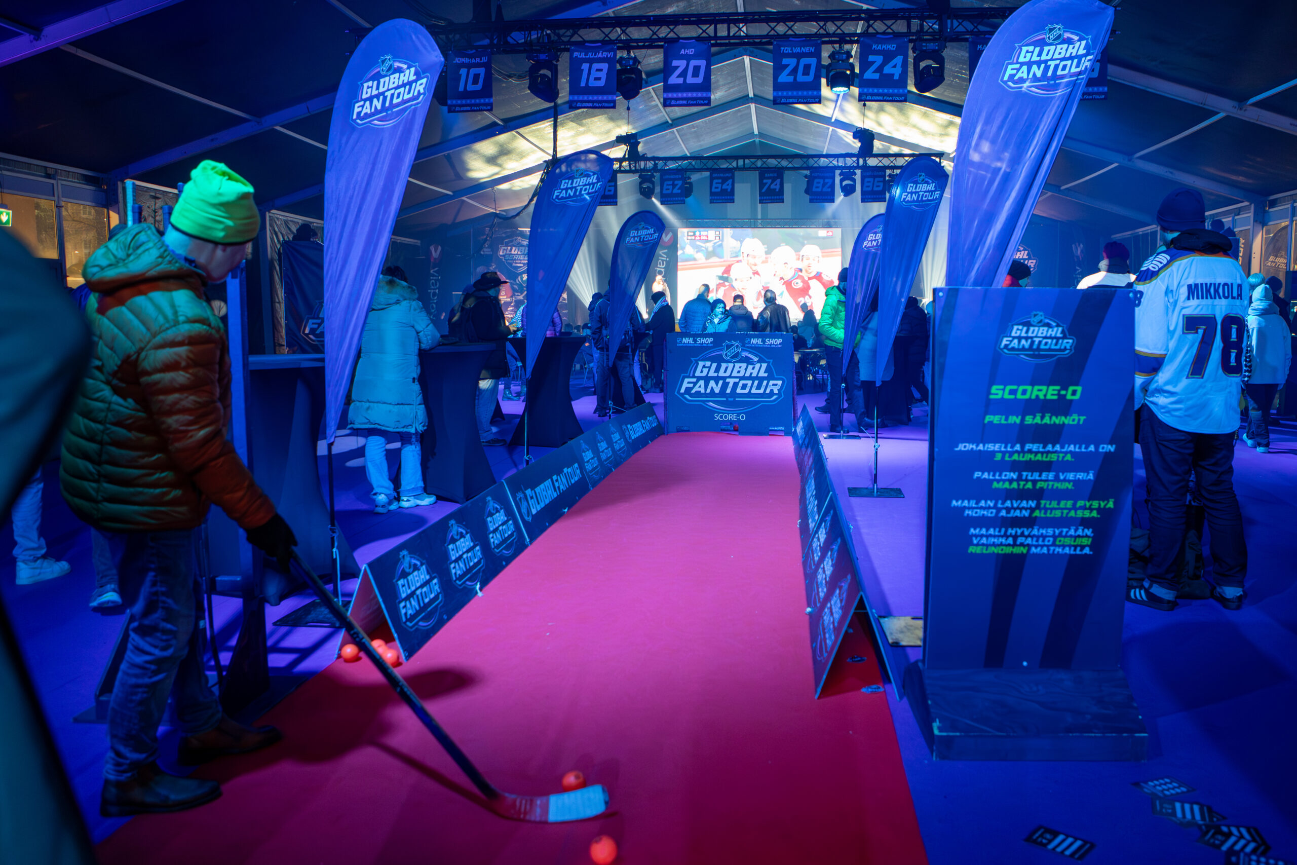 Pure Eventsin vastuulla on NHL:n tapahtumien fanialueiden kokonaisvaltainen materiaalituotanto, mukaan lukien teltat, beach flagit, digipintojen materiaalit sekä kaikki printtituotteet banderolleista paperituotteisiin.